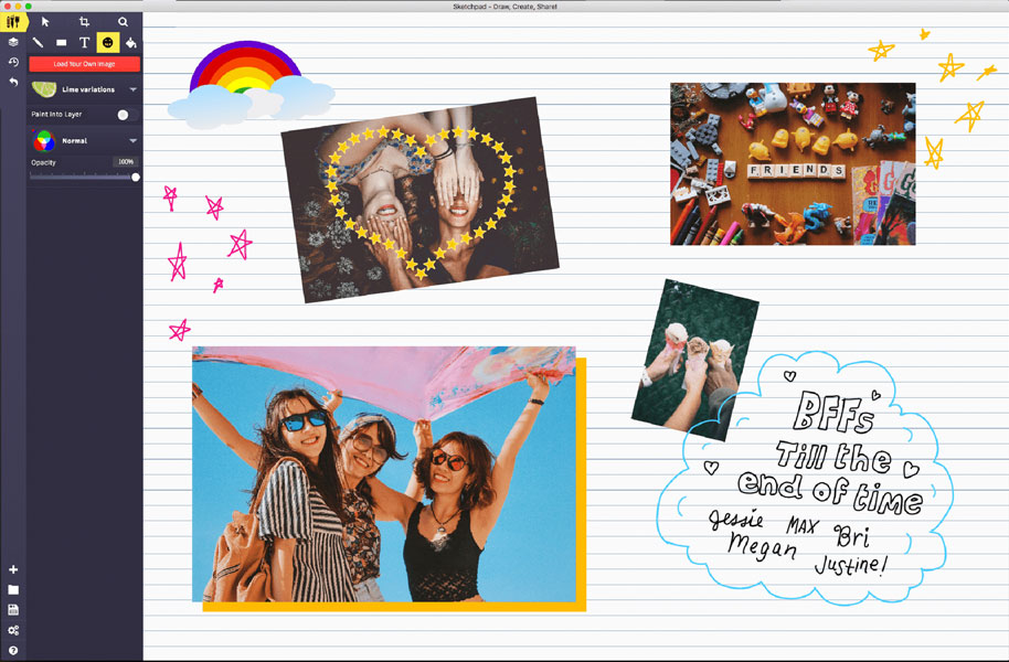 Whether you’re working on a school poster or brainstorming your next comic book character, Sketchpad makes it easy to bring your ideas to life. Easily draw, edit photos, or design your next business card. Craft images for social media posts, digital ads, paper, or even apparel. Make a quick photo edit with the drag and drop feature, or lose yourself for hours in Sketchpad’s streamlined digital makerspace.
